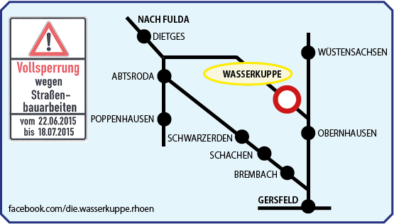 - Bitte beachte bei deiner Anreise, dass die Durchfahrt auf die Wasserkuppe von Gersfeld kommend derzeit wegen Straßenbauarbeiten gesperrt ist. Die Auffahrt erfolgt von Norden über Abtsroda.